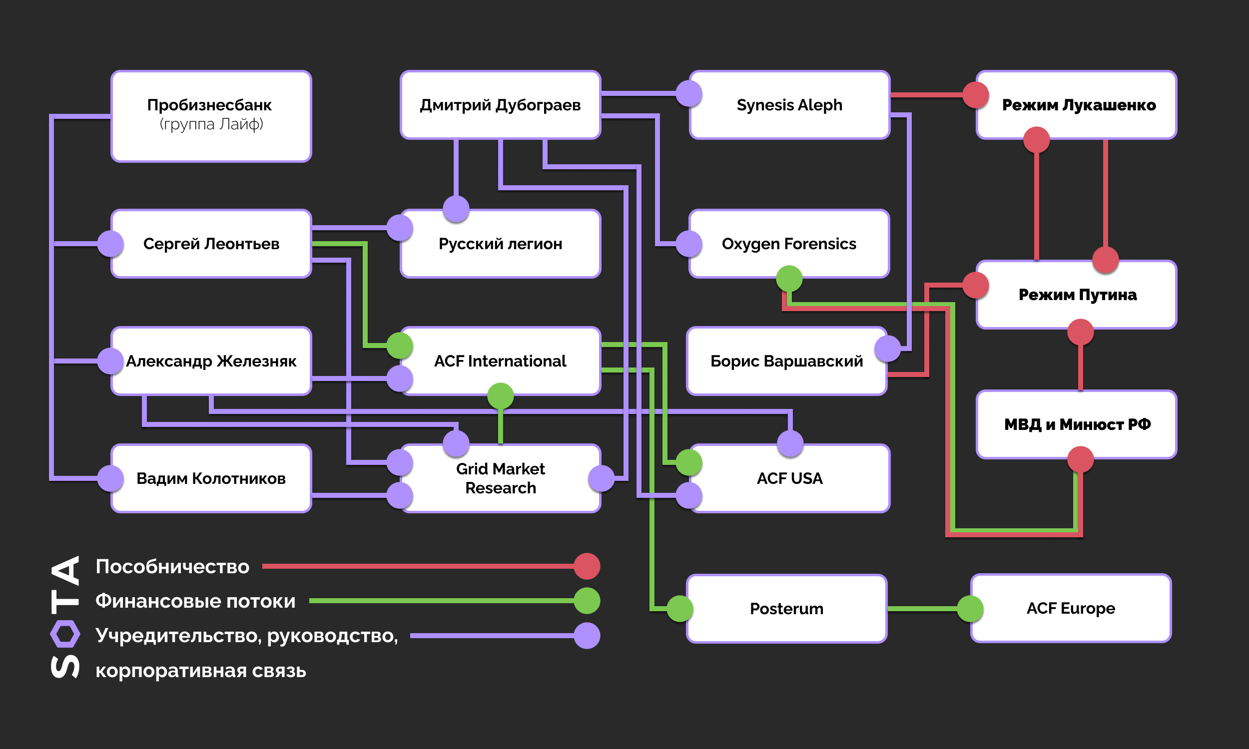 Модель работы американского ФБК аналогична европейской. Среди сходств: используется одна ключевая фигура, через которую проходят финансовые потоки, а также фирма-прокладка для перевода денег и создания инфраструктуры. Отличие схемы в США в том, что влияние этих участников на работу ФБК значительно сильнее, чем в Европе. Железняк, Леонтьев, Дубограев и другие становятся не просто спонсорами, а ключевыми звеньями организации, что подрывает основы ее работы и вызывает серьезные вопросы к прозрачности и честности деятельности ФБК. Да и Лапинскасы программные комплексы для МВД РФ не поставляли.