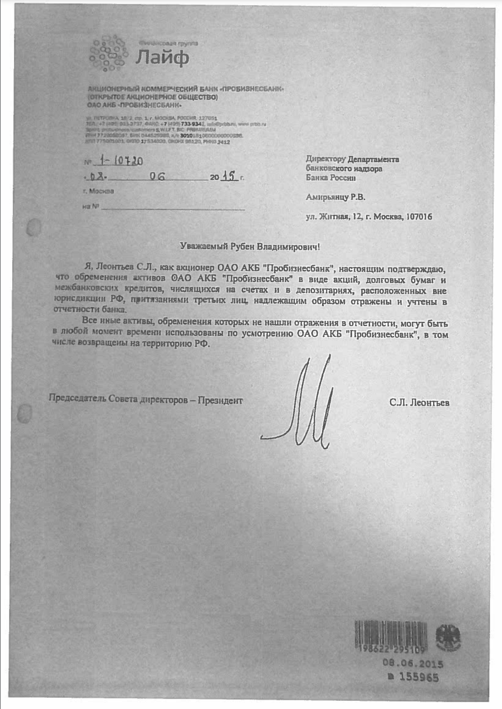 Партнер Железняка Сергей Леонтьев же убеждал Центральный банк, что в отчетности все чисто, никаких серых схем нет, а деньги «Пробизнесбанка» не находятся в залоге и могут быть в любой момент возвращены на родину.